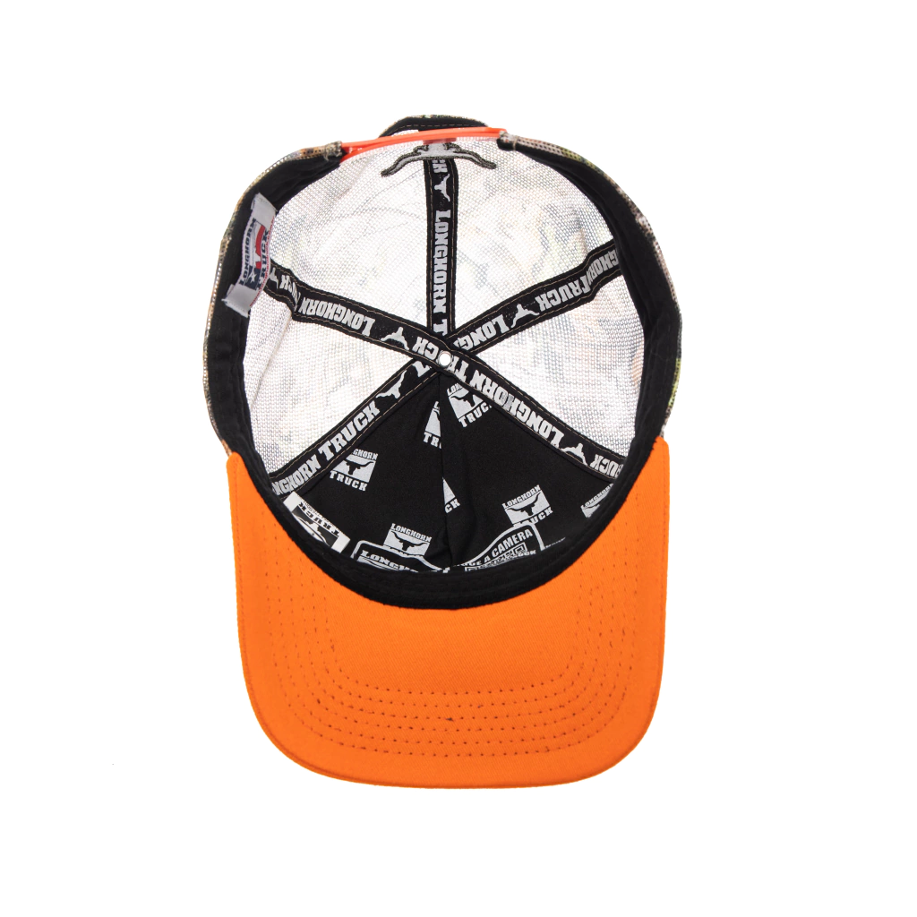 Detalhes: Boné modelo TRUCKER (copa alta), aba curva, Patch Bordado com plastizol em alto relevo na parte frontal. Bordado nas laterais e atrás. Contém 6 costuras na aba e feixe de plástico ajustável na parte traseira.